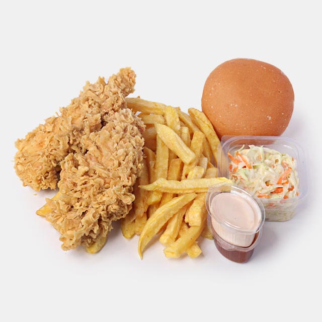 مرغ سوخاری 3 تکه3 تکه مرغ ( میکس ران و سینه )، سیب زمینی، 1 عدد نان بروچن، 1 عدد سالاد کلم1000000 تومان