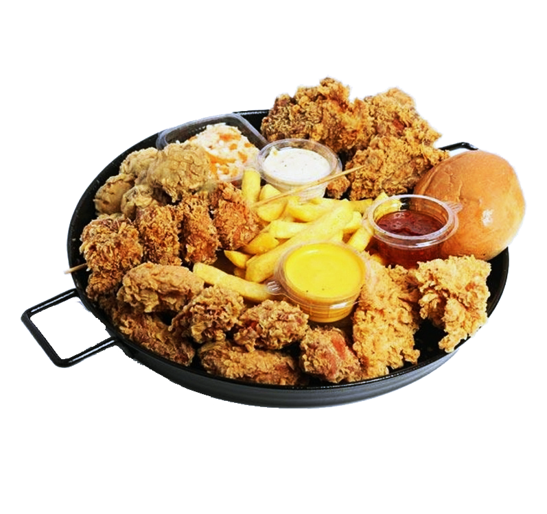 مرغ سوخاری 2 تکه2 تکه مرغ ( میکس ران و سینه )، سیب زمینی، 1 عدد نان بروچن، 1 عدد سالاد کلم1000000 تومان