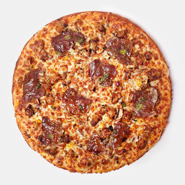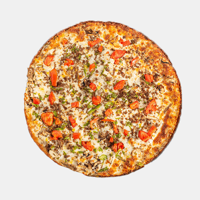 پیتزا گوشت و قارچپنیر پیتزا، گوشت چرخ کرده پخته شده، قارچ، فلفل دلمهای، زیتونتک نفره: 1000 توماندو نفره: 1000 تومان
