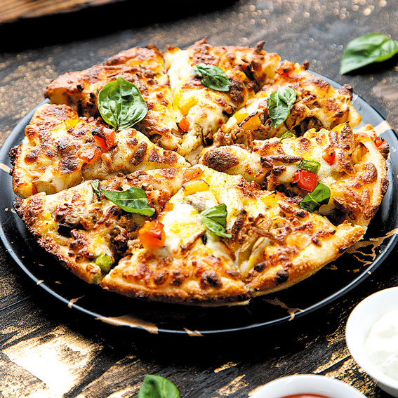 پیتزا چیکن آلفردوسینه مرغ، سس آلفردو، قارچ، پنیر پیتزا، فلفل دلمهایتک نفره: 1000 توماندو نفره: 1000 تومان